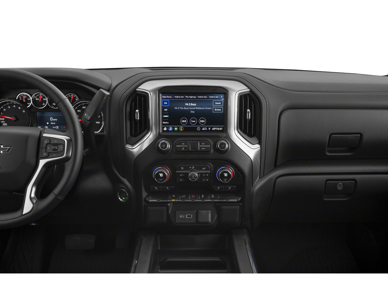 CONVENIENCE PACKAGE includes (CJ2) dual-zone automatic climate control, (A2X) 10-way power driver seat including power lumbar, (KA1) heated driver and passenger seats, (KI3) heated steering wheel, (N37) manual tilt/telescoping steering column and (R7O) Cloth Rear Seat with Storage Package, CHEVROLET INFOTAINMENT 3 SYSTEM 8 diagonal color touchscreen, AM/FM stereo. Additional features for compatible phones include: Bluetooth® audio streaming for 2 active devices, voice command pass-through to phone, Apple CarPlay and Android Auto capable. (STD), ENGINE, 5.3L ECOTEC3 V8 (355 hp [265 kW] @ 5600 rpm, 383 lb-ft of torque [518 Nm] @ 4100 rpm); featuring all-new Dynamic Fuel Management that enables the engine to operate in 17 different patterns between 2 and 8 cylinders, depending on demand, to optimize power delivery and efficiency (STD), ELECTRONICALLY CONTROLLED with overdrive and tow/haul mode. Includes Cruise Grade Braking and Powertrain Grade Braking (STD), SEAT, CLOTH REAR WITH STORAGE PACKAGE 60/40 folding bench for Crew Cab models, includes seatback storage on left and right side, center fold out armrest with 2 cupholders, (includes child seat top tether anchor). Chevrolet LT Trail Boss with Iridescent Pearl Tricoat exterior and Gideon/Very Dark Atmosphere interior features a 8 Cylinder Engine with 355 HP at 5600 RPM*.