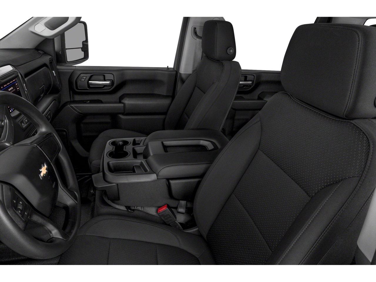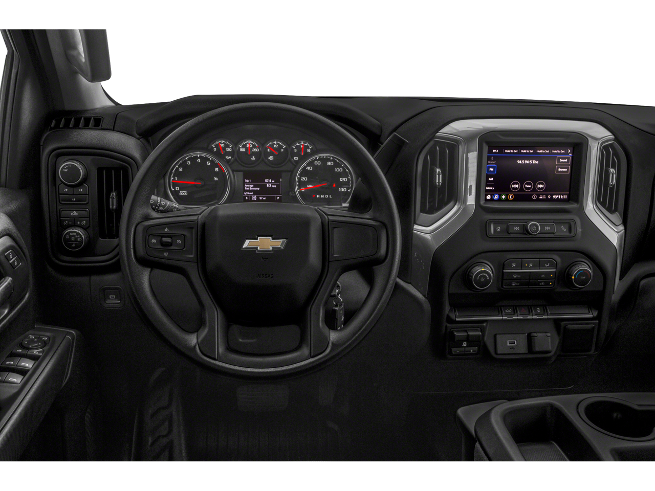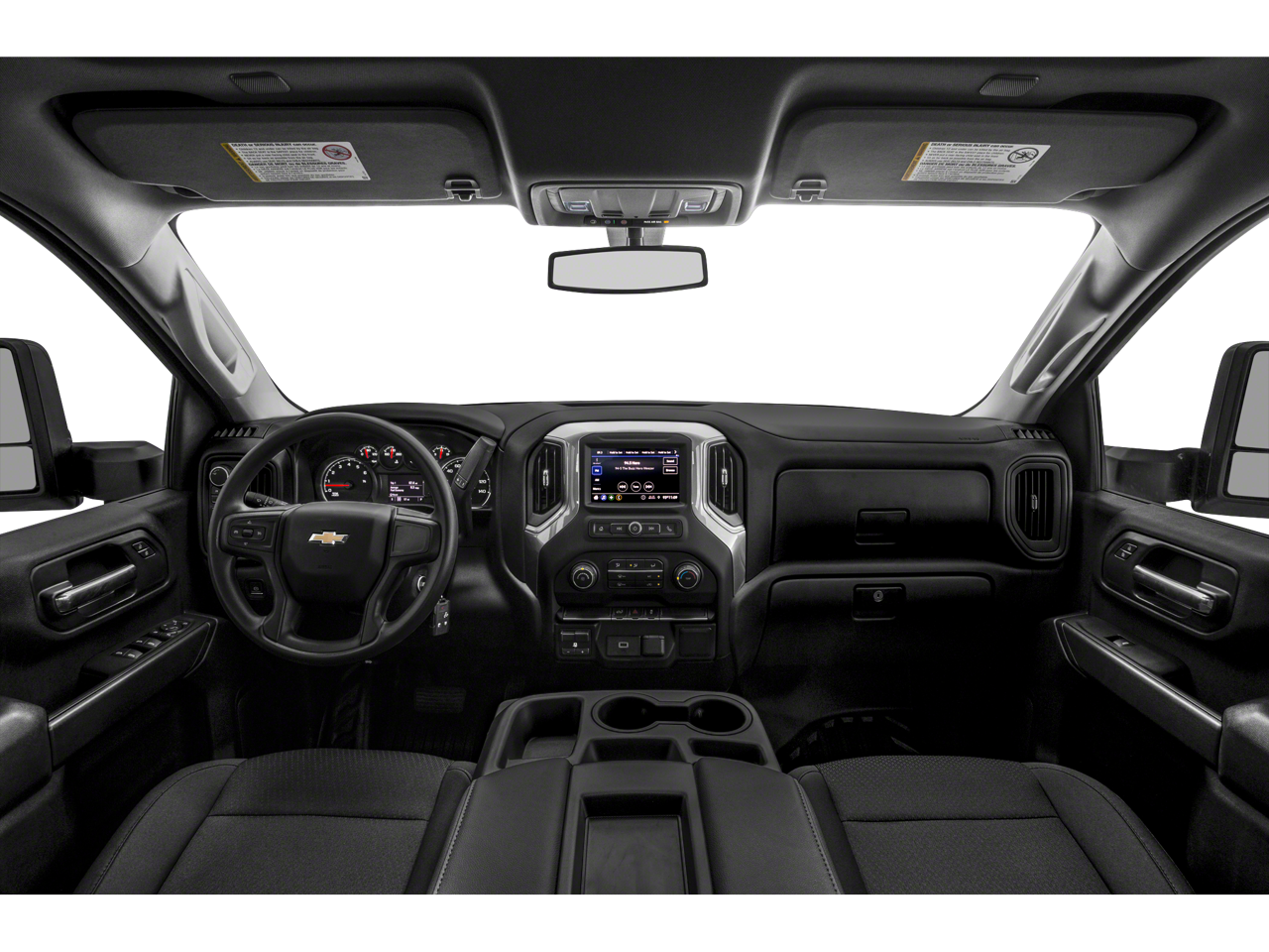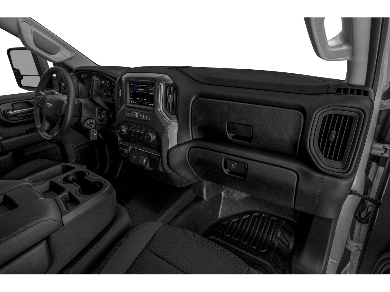 WT SAFETY PACKAGE includes (UD5) Front and Rear Park Assist, (UKC) Lane Change Alert with Side Blind Zone Alert, (UFG) Rear Cross Traffic Alert, (V46) Chrome front bumper and (VJH) Chrome rear bumper, WT CONVENIENCE PACKAGE includes (AQQ) Remote Keyless Entry, (QT5) EZ Lift power lock and release tailgate, (AKO) tinted windows, (C49) rear-window defogger, (K34) cruise control, (DBG) power trailer mirrors with heated upper glass and manual extending/folding; MIRRORS, OUTSIDE POWER-ADJUSTABLE VERTICAL TRAILERING WITH HEATED AND AUTO-DIMMING UPPER GLASS lower convex mirrors, turn signal indicators, puddle lamps, perimeter lighting, auxiliary lighting, power folding/manual extending (extends 3.31 [84.25mm]) Includes (DD8) auto-dimming rearview mirror.), CHEVROLET INFOTAINMENT 3 SYSTEM 7 diagonal color touchscreen, AM/FM stereo. Additional features for compatible phones include: Bluetooth® audio streaming for 2 active devices, voice command pass-through to phone, Apple CarPlay and Android Auto capable. (STD), ENGINE, 6.6L V8 with Direct Injection and Variable Valve Timing, gasoline, (401 hp [299 kW] @ 5200 rpm, 464 lb-ft of torque [629 N-m] @ 4000 rpm) (STD), HEAVY-DUTY (STD). Chevrolet Work Truck with SUMMIT WHITE exterior and JET BLACK interior features a 8 Cylinder Engine with 401 HP at 5200 RPM*.