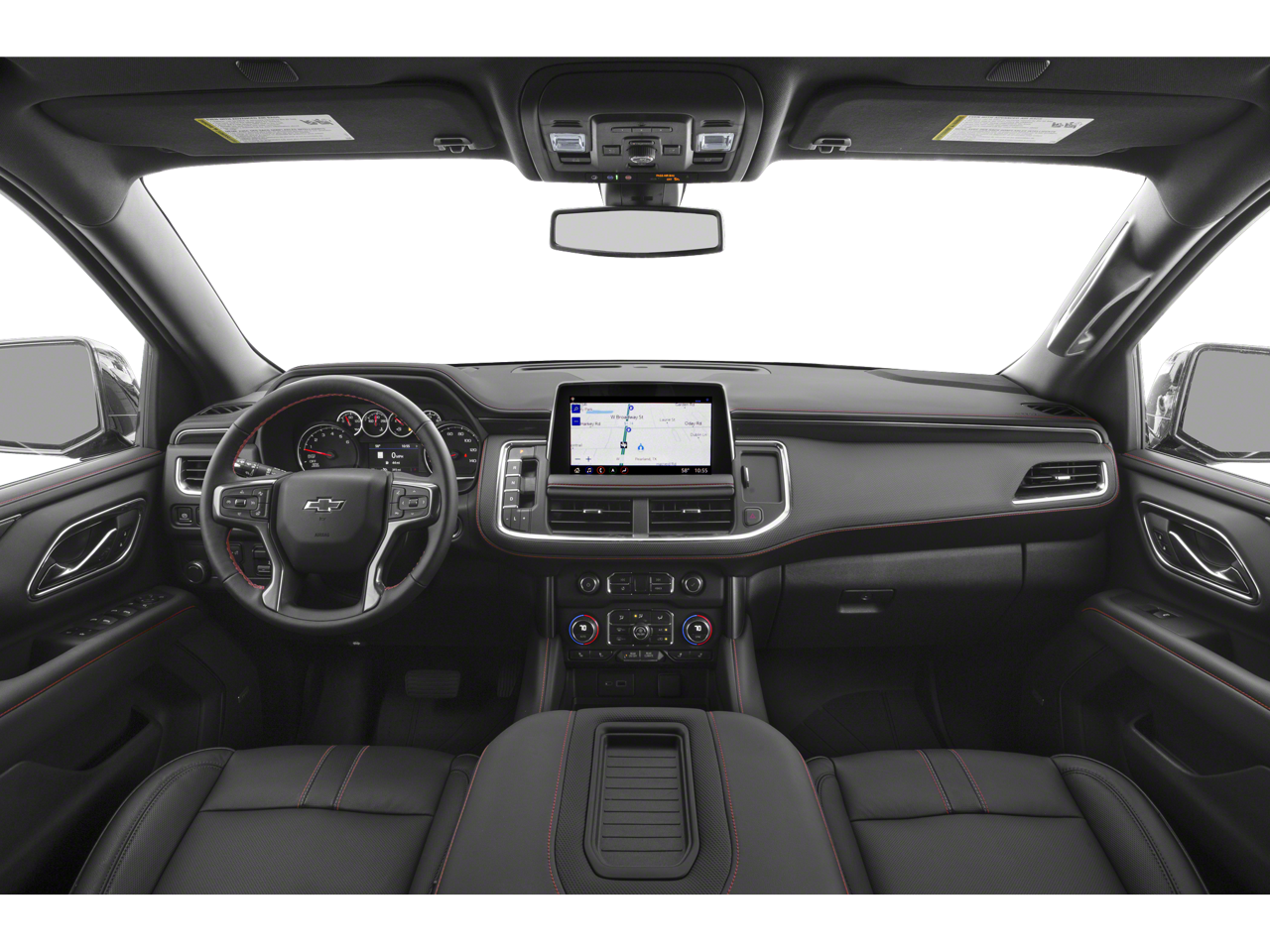 LUXURY PACKAGE includes (WPD) Driver Alert Package content, (UV2) HD Surround Vision, (UKK) Rear Pedestrian Alert, (A45) memory settings, (DXR) outside heated power-adjustable, power-folding, body-color mirrors with driver-side auto-dimming and integrated turn signal indicators, (N38) power tilt and telescopic steering column, (KI3) automatic heated steering wheel, (KA6) second row outboard heated seats, (ATT) second row power 60/40 split-folding bench seats and (AS8) third row power 60/40 split-folding bench seats, SUNROOF, TILT-SLIDING with express-open and close and power sunshade, SEATS, POWER RELEASE, CHEVROLET INFOTAINMENT 3 PREMIUM SYSTEM WITH CONNECTED NAVIGATION, 10.2 DIAGONAL HD COLOR TOUCHSCREEN AM/FM stereo, Bluetooth® audio streaming for 2 active devices, Apple CarPlay and Android Auto capable, enhanced voice recognition, additional memory for in-vehicle apps, cloud connected personalization for select infotainment and vehicle settings. Subscription required for enhanced and connected services after trial period. 5.3L ECOTEC3 V8 with Dynamic Fuel Management, Direct Injection and Variable Valve Timing, includes aluminum block construction (355 hp [265 kW] @ 5600 rpm, 383 lb-ft of torque [518 Nm] @ 4100 rpm) (STD), 10-SPEED AUTOMATIC electronically controlled with overdrive, includes Traction Select System including tow/haul (Most vehicles built on or after 6-7-2021 with a V8 engine will have (NSS) Not Equipped with Automatic Stop/Start, which removes Automatic Stop/Start, Engine control stop/start disable button and its content.) (STD), DRIVER ALERT PACKAGE includes (UHX) Lane Keep Assist with Lane Departure Warning, (UKC) Lane Change Alert with Side Blind Zone Alert, (UFG) Rear Cross Traffic Alert and (UD5) Front and Rear Park Assist. Chevrolet RST with Black exterior and Jet Black/Victory Red interior features a 8 Cylinder Engine with 355 HP at 5600 RPM*.