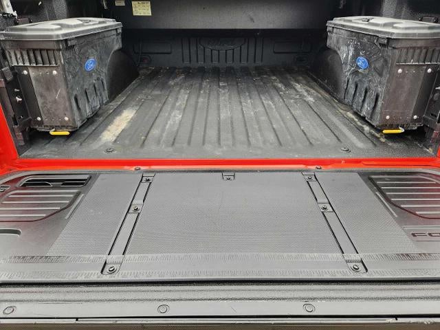 EQUIPMENT GROUP 801A HIGH Wireless Charging Pad, Rain-Sensing Wipers, Power Tilt/Telescoping Steering Column w/Memory, Torsen Package, Front-Axle w/Torsen Differential, Rigid LED Fog Lamp, Tow Technology Package, smart trailer tow connector and BLIS w/trailer tow coverage where BLIS is available, Integrated Trailer Brake Controller, 360 Degree Camera, trailer reverse guidance, Pro Trailer Backup Assist, Convenience Package, Interior Work Surface, Connected Built-In Navigation, Navigation services require SYNC4 and FordPass Connect (optional on select vehicles), complimentary connect service and the FordPass app (see FordPass Terms for details), Eligible vehicles receive a complimentary 90-day trial of navigation services that begins on the new vehicle warranty start date, Customers must, POWER TECH PACKAGE Power Tailgate, tailgate step and tailgate work surface, Pro Power Onboard - 2KW, TWIN PANEL MOONROOF, TOUGH BED SPRAY-IN BEDLINER, TRANSMISSION: ELECTRONIC 10-SPEED AUTOMATIC terrain management modes: normal/baja/rock crawl/sport/mud-sand/wet-snow and tow-haul mode (STD). Ford Raptor with Code Orange exterior and Black interior features a V6 Cylinder Engine with 450 HP at 5000 RPM*.