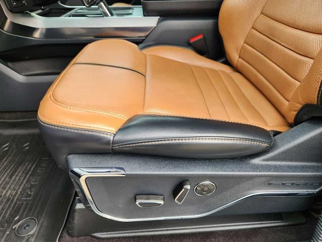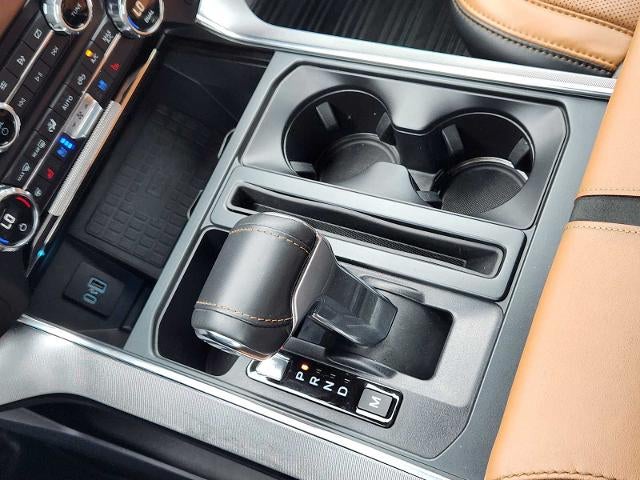 EQUIPMENT GROUP 701A HIGH Ford Co-Pilot360 Active 2.0 Package, forward sensing system, BlueCruise Hands-Free Driving, Driver-assist features are supplemental and do not replace the drivers attention, judgment and need to control the vehicle, It does not replace safe driving, See owners manual for details and limitations, Active Park Assist 2.0, Radio: B&O Unleashed Sound System by Bang & Olufsen, HD Radio and 18 speakers including subwoofer, Power Tailgate, tailgate step and tailgate work surface, Tow Technology Package, smart trailer tow connector and BLIS w/trailer tow coverage where BLIS is available, 360 Degree Camera, trailer reverse guidance, Pro Trailer Backup Assist, TWIN PANEL MOONROOF, ENGINE: 3.5L V6 ECOBOOST auto start-stop technology, TRANSMISSION: ELECTRONIC 10-SPEED AUTOMATIC selectable drive modes: normal, ECO, sport, tow/haul, slippery, deep snow/sand and mud/rut (STD). Ford Platinum with Antimatter Blue exterior and Carmelo interior features a V6 Cylinder Engine with 400 HP at 6000 RPM*.