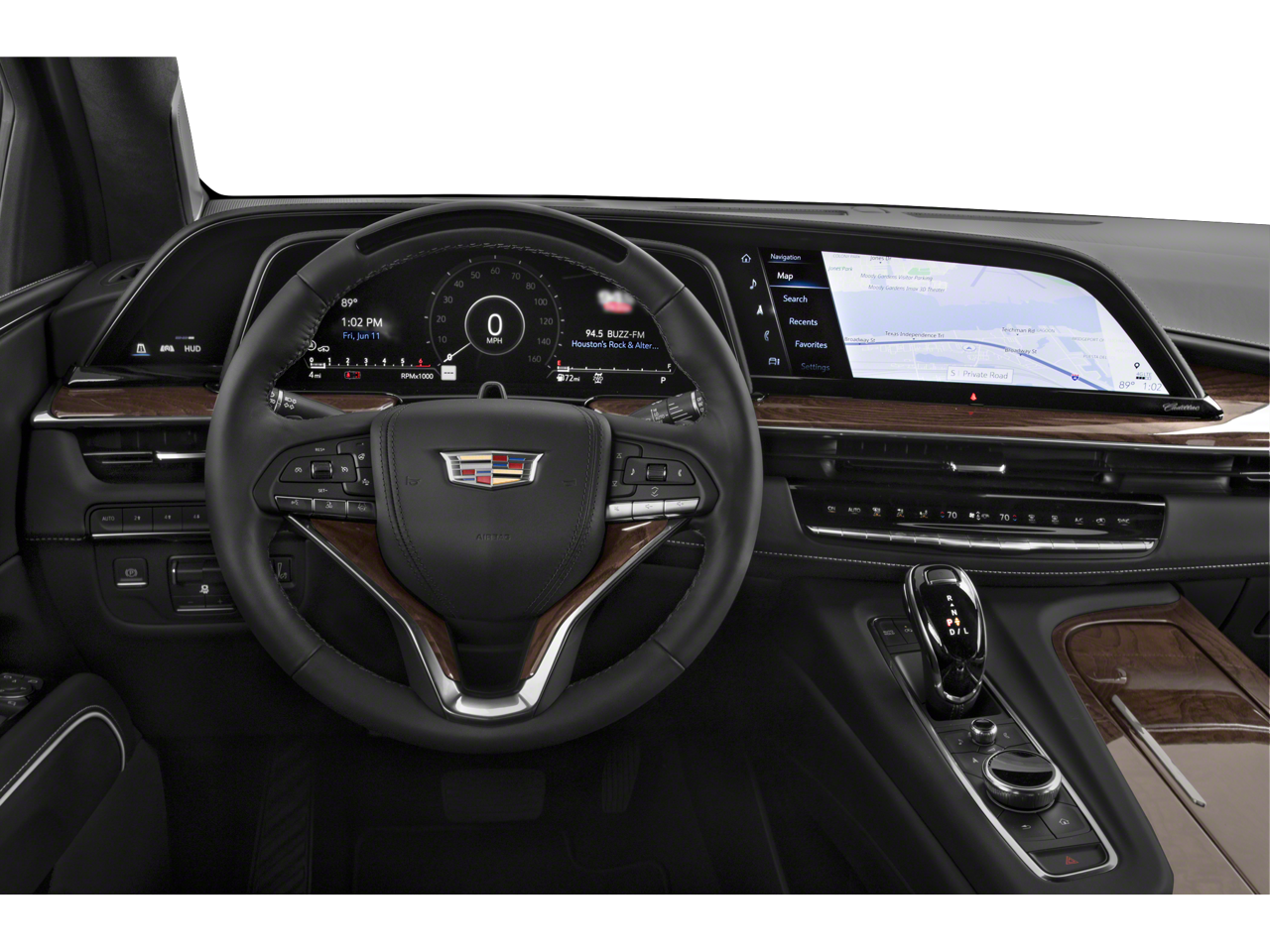 SUPER CRUISE a hands-free driver assistance system for use on compatible roads (Vehicles built between October, 2021 and December 5, 2021, will be forced to have (00U) Not Equipped with Super Cruise, which removes Super Cruise and its content. Beginning with production starting December 6, 2021, (UKL) Super Cruise will be forced on as standard content. Beginning with production starting May 9, 2022, vehicles will be forced to include (00U) Not Equipped with Super Cruise, which removes Super Cruise and its content. See dealer for details or the window label for the features on a specific vehicle. Always pay attention while driving and when using Super Cruise. Do not use a hand-held device. Visit cadillac.com/supercruise for compatible roads and full details.), POWER-RETRACTABLE WITH PERIMETER LIGHTING, CONSOLE REFRIGERATOR freezer mode, covered storage, large and small storage bins, dual cup holders, second row electronic climate and heated seat controls. Also includes auxiliary power outlet, USB A/C ports and 110-volt outlet, OLED INFOTAINMENT EXPERIENCE WITH NAVIGATION AM/FM/SiriusXM with 360L with 16.9 diagonal color information display (displays and controls navigation, music and all features and functions of the vehicle), personalized profiles for each drivers settings, Natural Voice Recognition, Phone Integration for Wireless Apple CarPlay/Wireless Android Auto capability for compatible phone, Connected Apps and Teen Driver (STD), 6.2L V8 WITH DYNAMIC FUEL MANAGEMENT Direct Injection and Variable Valve Timing, includes aluminum block construction (420 hp [313.2 kW] @ 5600 rpm, 460 lb-ft of torque [623.7 Nm] @ 4100 rpm) (STD), 10-SPEED AUTOMATIC electronically controlled with overdrive, tow/haul mode and tap up/tap down shifting (STD). Cadillac Sport Platinum with Black Raven exterior and Jet Black interior features a 8 Cylinder Engine with 420 HP at 5600 RPM*.