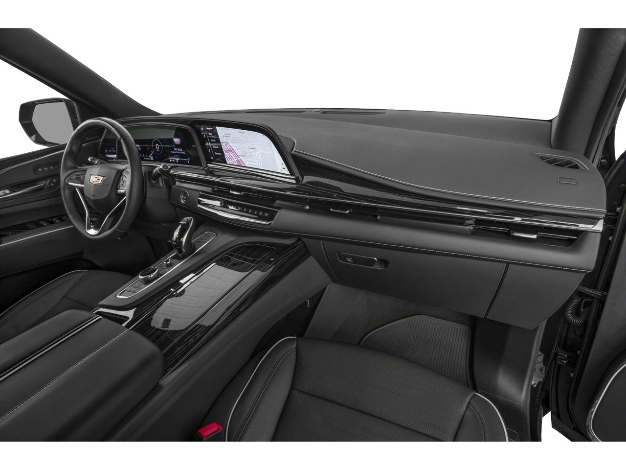 AUDIO SYSTEM FEATURE, AKG STUDIO REFERENCE 36-SPEAKER SYSTEM includes 3D Surround, Navigation Rendering and Front Passenger Volume Control, ONYX PACKAGE includes (SFZ) Monochrome Cadillac emblems, (RIK) Gloss Black Escalade nameplate, and (SSX) 22 12-Spoke Gloss Black finish alloy wheels, LPO (Includes (S3I) Cadillac crest puddle lamps, LPO and wheel locks. TOURING PACKAGE includes (AF7) front and rear, soft-close doors, (B7G) illuminating sill plates and (F47) Air Ride Adaptive suspension, SUPER CRUISE a hands-free driver assistance system for use on compatible roads (Beginning with start of production through October 2, 2022, vehicles will be forced to include either (00U) Not Equipped with Super Cruise and/or (02O) Not Equipped with Super Cruise, which will remove Super Cruise and its content. See dealer for details or the window label for the features on a specific vehicle. Always pay attention while driving and when using Super Cruise. Do not use a hand-held device. Visit cadillac.com/supercruise for compatible roads and full details.), POWER-RETRACTABLE WITH PERIMETER LIGHTING, SUSPENSION, OLED INFOTAINMENT EXPERIENCE WITH NAVIGATION AM/FM/SiriusXM with 360L with 16.9 diagonal color information display (displays and controls navigation, music and all features and functions of the vehicle), personalized profiles for each drivers settings, Natural Voice Recognition, Phone Integration for Wireless Apple CarPlay/Wireless Android Auto capability for compatible phone, Connected Apps and Teen Driver (STD), 6.2L V8 WITH DYNAMIC FUEL MANAGEMENT Direct Injection and Variable Valve Timing, includes aluminum block construction (420 hp [313.2 kW] @ 5600 rpm, 460 lb-ft of torque [623.7 Nm] @ 4100 rpm) (STD), 10-SPEED AUTOMATIC electronically controlled with overdrive, tow/haul mode and tap up/tap down shifting (STD), EXPRESS-UP/DOWN (auto Express-Up/Down via key fob) (Beginning with start of production, vehicles will be forced to include (00N) Not Equipped with 2nd Row Express-Up Window Control, which removes only 2nd Row Express-Up Window Control functionality. See dealer for details or the window label for the features on a specific vehicle.). Cadillac 4WD Sport with BLACK RAVEN exterior and BRANDY/DK ATMOSPHERE ACCENTS FULL LEATHER SEATS interior features a 8 Cylinder Engine with 420 HP at 5600 RPM*.