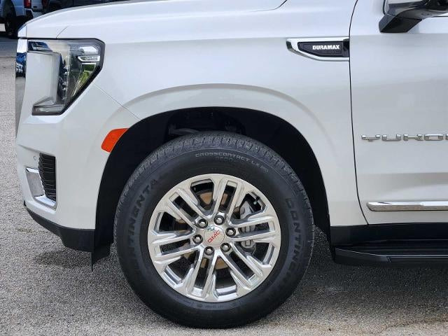 SLT LUXURY PACKAGE includes (KSG) Adaptive Cruise Control, (UGN) Enhanced Automatic Emergency Braking, (UV2) HD Surround Vision, (UKK) Rear Pedestrian Alert, (A45) memory settings, (DXR) outside heated power-adjustable, power-folding, body-color mirrors with driver-side auto-dimming and integrated turn signal indicators, (N38) power tilt and telescopic steering column, (KI3) heated steering wheel, (KA6) second row outboard heated seats, (ATT) second row power 60/40 split-folding bench seats and (AS8) third row power 60/40 split-folding bench seats, DURAMAX 3.0L TURBO-DIESEL I6 (277 hp [206.6 kW] @ 3750 rpm, 460 lb-ft of torque [623.7 N-m] @ 1500 rpm), FLOOR LINER PACKAGE (dealer-installed) (Includes (RIA) 1st and 2nd row all-weather floor liners, (RIB) 3rd row all-weather floor liners, LPO and (CAV) all-weather cargo mat, LPO. 10.2 DIAGONAL PREMIUM GMC INFOTAINMENT SYSTEM WITH GOOGLE BUILT-IN includes color touch-screen, multi-touch display, AM/FM stereo, Bluetooth® streaming audio for music and most phones; featuring wireless Android Auto and Apple CarPlay capability for compatible phones, advanced voice recognition, in-vehicle apps, personalized profiles for infotainment and vehicle settings (STD), 10-SPEED AUTOMATIC electronically controlled with overdrive, includes Traction Select System including tow/haul. GMC SLT with White Frost Tricoat exterior and Dark Walnut/Slate interior features a Straight 6 Cylinder Engine with 277 HP at 3750 RPM*.