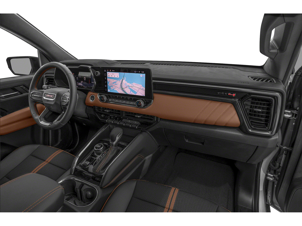 PREMIUM 7-SPEAKER SYSTEM with external amplifier, CANYON SAFETY PLUS PACKAGE includes (UD7) Rear Park Assist, (UFB) Rear Cross Traffic Braking and (UKI) Blind Zone Steering Assist With (ZL6) ProGrade Trailering System, includes (UKW) Blind Zone Steering Assist with Trailering, ENGINE, TURBOMAX (310 hp [231 kW] @ 5600 rpm, 430 lb-ft of torque [583 Nm] @ 3000 rpm) (STD), TRANSMISSION, 8L80 (STD). GMC 4WD AT4 with ONYX BLACK exterior and JET BLACK / TIMBER interior features a 4 Cylinder Engine with 310 HP at 5600 RPM*.