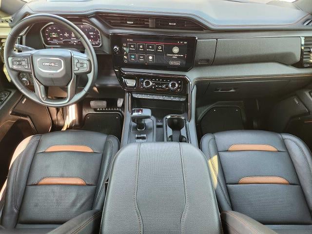 TECHNOLOGY PACKAGE includes (DRZ) Rear Camera Mirror and (UV6) Multicolor 15 Diagonal Head-Up Display (Includes (UVN) Bed View Camera.), ENGINE, 6.2L ECOTEC3 V8 (420 hp [313 kW] @ 5600 rpm, 460 lb-ft of torque [624 Nm] @ 4100 rpm); featuring Dynamic Fuel Management, POWER, 20 X 9 (50.8 CM X 22.9 CM) MACHINED ALUMINUM with Carbon Grey Metallic accents, AT4 PREFERRED PACKAGE includes (UG1) Universal Home Remote and (A48) rear sliding power window, 13.4 DIAGONAL PREMIUM GMC INFOTAINMENT SYSTEM WITH GOOGLE BUILT IN APPS SUCH AS NAVIGATION AND VOICE ASSISTANCE, INCLUDES COLOR TOUCH-SCREEN, MULTI-TOUCH DISPLAY, AM/FM STEREO Bluetooth® streaming audio for music and most phones; featuring wireless Android Auto and Apple CarPlay capability for compatible phones (STD), TRANSMISSION, 10-SPEED AUTOMATIC WITH ELECTRONIC PRECISION SHIFT, ELECTRONICALLY CONTROLLED with overdrive, and tow/haul mode and steering column paddle shifters. Includes Cruise Grade Braking and Powertrain Grade Braking. GMC AT4 with Sterling Metallic exterior and Jet Black with Kalahari accents interior features a 8 Cylinder Engine with 420 HP at 5600 RPM*.