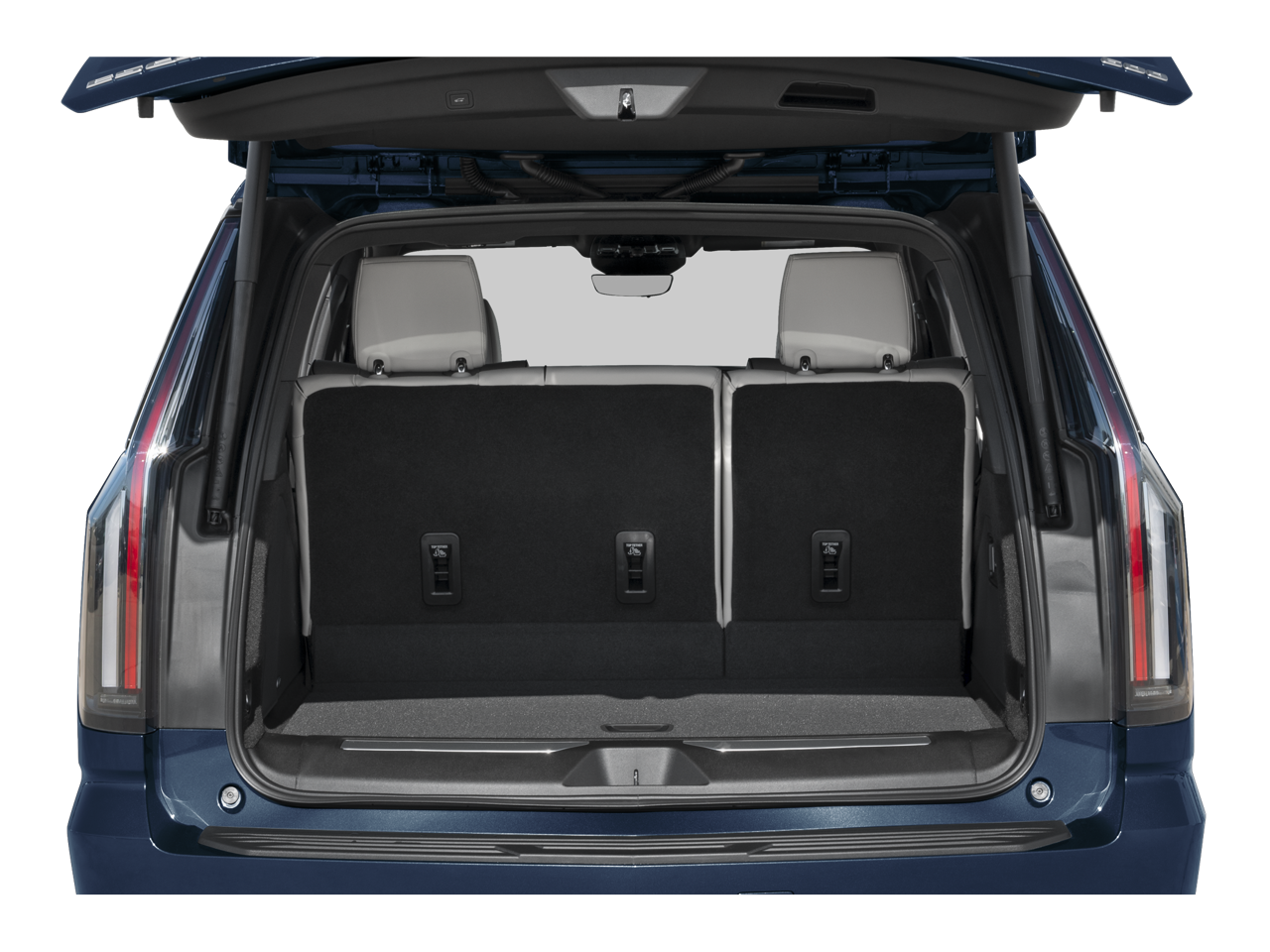EXECUTIVE SECOND ROW SEATING PACKAGE includes Rear Command Center, (AL4) second row captains chairs, (KUF) second row ventilated seats, heated second row cushion and seat backs with dual mode controls, 14-way adjustable seats including (ACS) 6-way power second row seat adjuster, (AHX) 4-way power bolster second row seat adjuster, (AJV) 10-point power massage second row seat adjuster, (K7D) second row dual wireless charging and (DK1) second row floor console with stowable tray tables, ONYX PACKAGE includes (RIK) Gloss Black Escalade nameplate, (SQO) 22 Forged Multi-Spoke alloy wheels with Satin Graphite finish and Laser Etching, LPO or (5FE) 24 Black alloy wheels, LPO and (R88) Black illuminated Cadillac emblem, LPO (RWD models include (SQO) 22 Forged Multi-Spoke alloy wheels with Satin Graphite finish and Laser Etching, LPO. 4WD models include (5FE) 24 Black alloy wheels, LPO.), 6.2L V8 WITH DYNAMIC FUEL MANAGEMENT Direct Injection and Variable Valve Timing, includes aluminum block construction (420 hp [313.2 kW] @ 5600 rpm, 460 lb-ft of torque [623.7 Nm] @ 4100 rpm) (STD), 10-SPEED AUTOMATIC electronically controlled with overdrive, tow/haul mode and tap up/tap down shifting (STD). Cadillac 4WD Sport Platinum with Galactic Gray Metallic exterior and Jet Black interior features a 8 Cylinder Engine with 420 HP at 5600 RPM*.